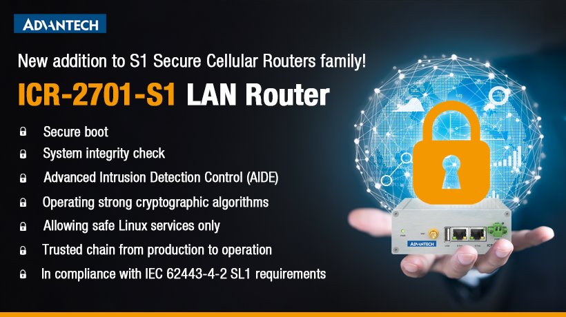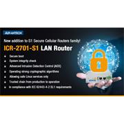 Průmyslový drátový router a IoT brána ICR-2701WA01-S1 s kovovým krytem, WiFi, podporou bezpečnostního standardu IEC 62443-4-2 SL1 a širokým rozsahem provozních teplot. Vhodný pro aplikace s vysokými požadavky na kyberbezpečnost a spolehlivost v průmyslovém prostředí.