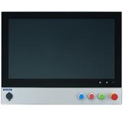 Průmyslový dotykový monitor 15,6" 1336x768 s krytím IP65, bez ventilátoru, s rozhraními DP, HDMI a HDBaseT, vhodný pro náročná prostředí a podporu push-button panelů.