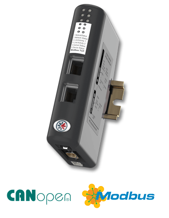 Anybus X-gateway Modbus-TCP působí jako překladatel mezi sítí CANopen Master a Modbus-TCP