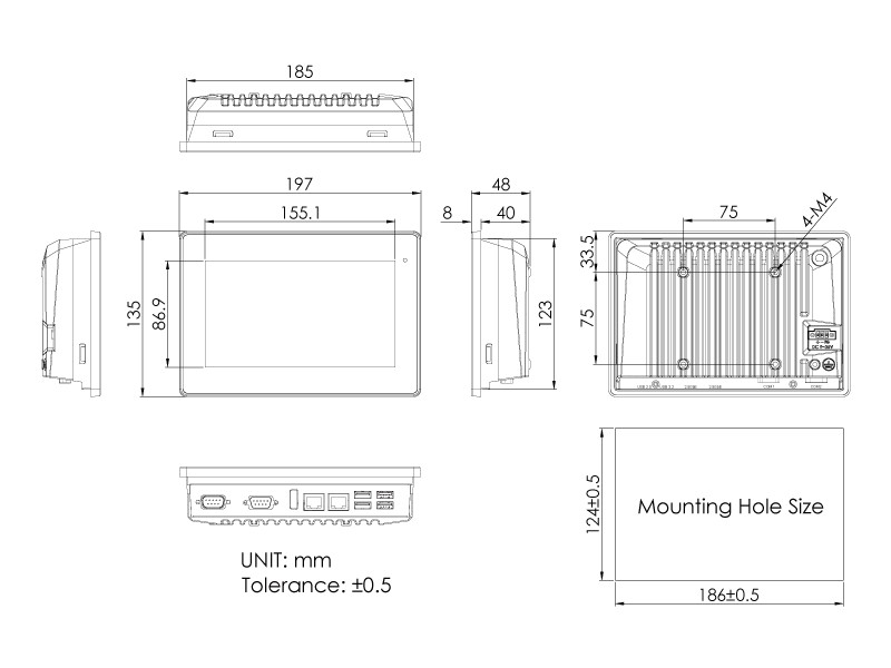 7" Panelový pasivně chlazený PC s širokoúhlou kapacitně dotykovou obrazovkou s podporou Windows 10 /11 IoT, Linux.
