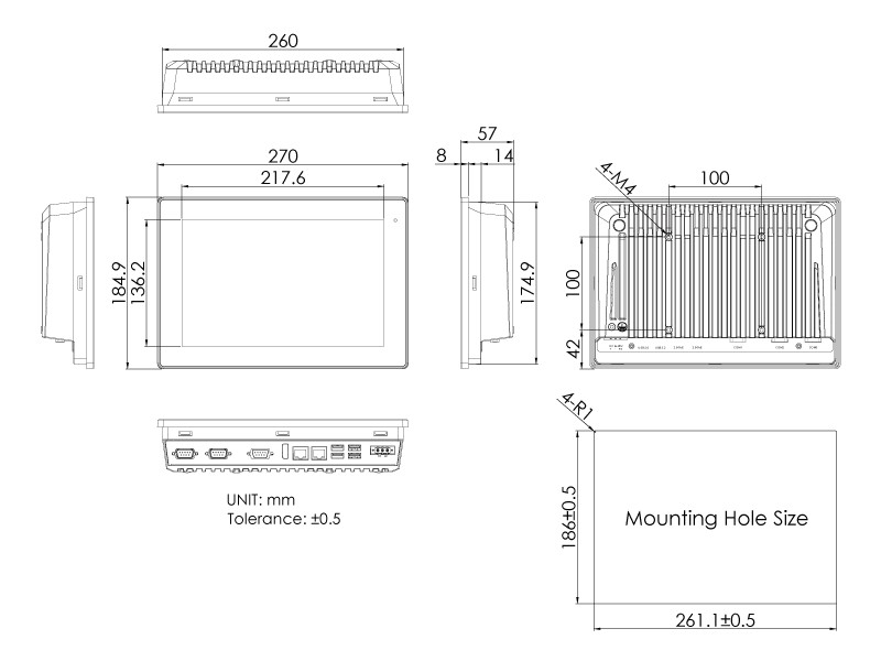10,1" Panelový pasivně chlazený PC s širokoúhlou kapacitně dotykovou obrazovkou s podporou Windows 10 /11 IoT, Linux.