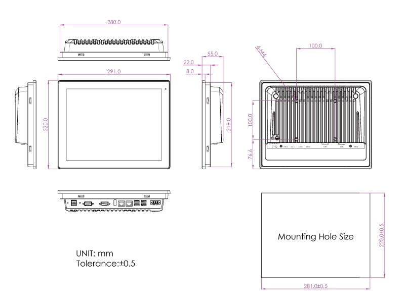 12,1" Panelový pasivně chlazený PC s kapacitně dotykovou obrazovkou s podporou Windows 10 /11 IoT, Linux.