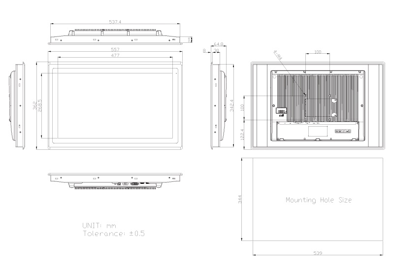21.5" Průmyslový IP66 monitor, VGA, HDMI, DVI-D, DP Monitor s bez dotykové vrstvy.