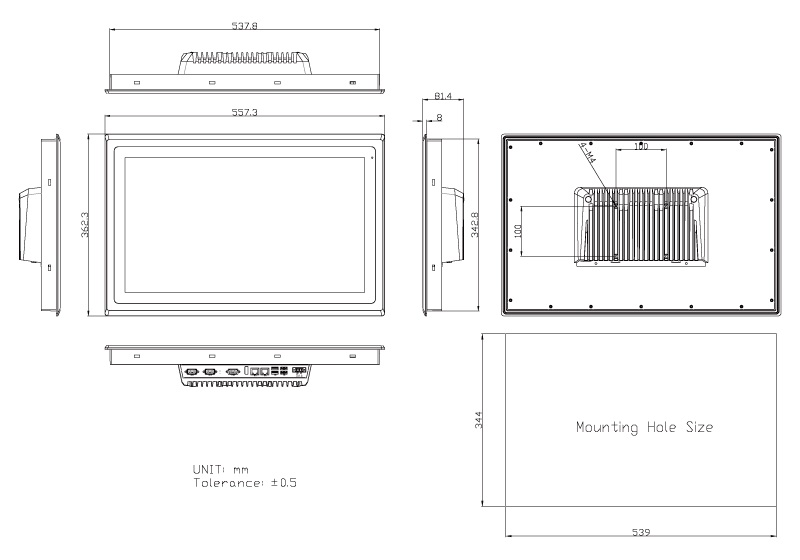21,5" Panelový pasivně chlazený PC s širokoúhlou Full HD kapacitně dotykovou obrazovkou s podporou Windows 10 /11 IoT, Linux.
