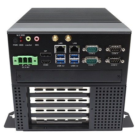 Box PC pasivně chlazený, Intel core 12/13th Gen, 4xCOM, 4xUSB, 2x2,5" SSD, 4xPCIe, 2xM.2, 2xLAN, HDMI, DP, -20 – 60°C