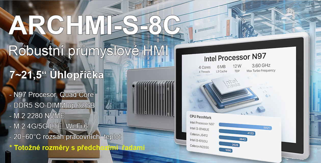 18,5" FHD HMI, Intel N97, kapacitní TS, 4xUSB, 2xLAN, 3xCOM