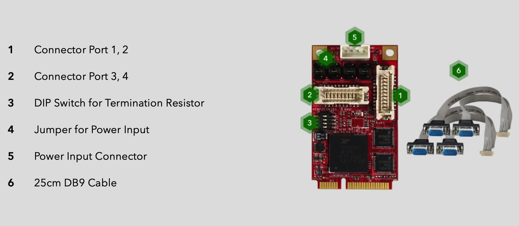 MiniPCI-e modul - 4x RS-232/422/485 -40 ~ 85° C
